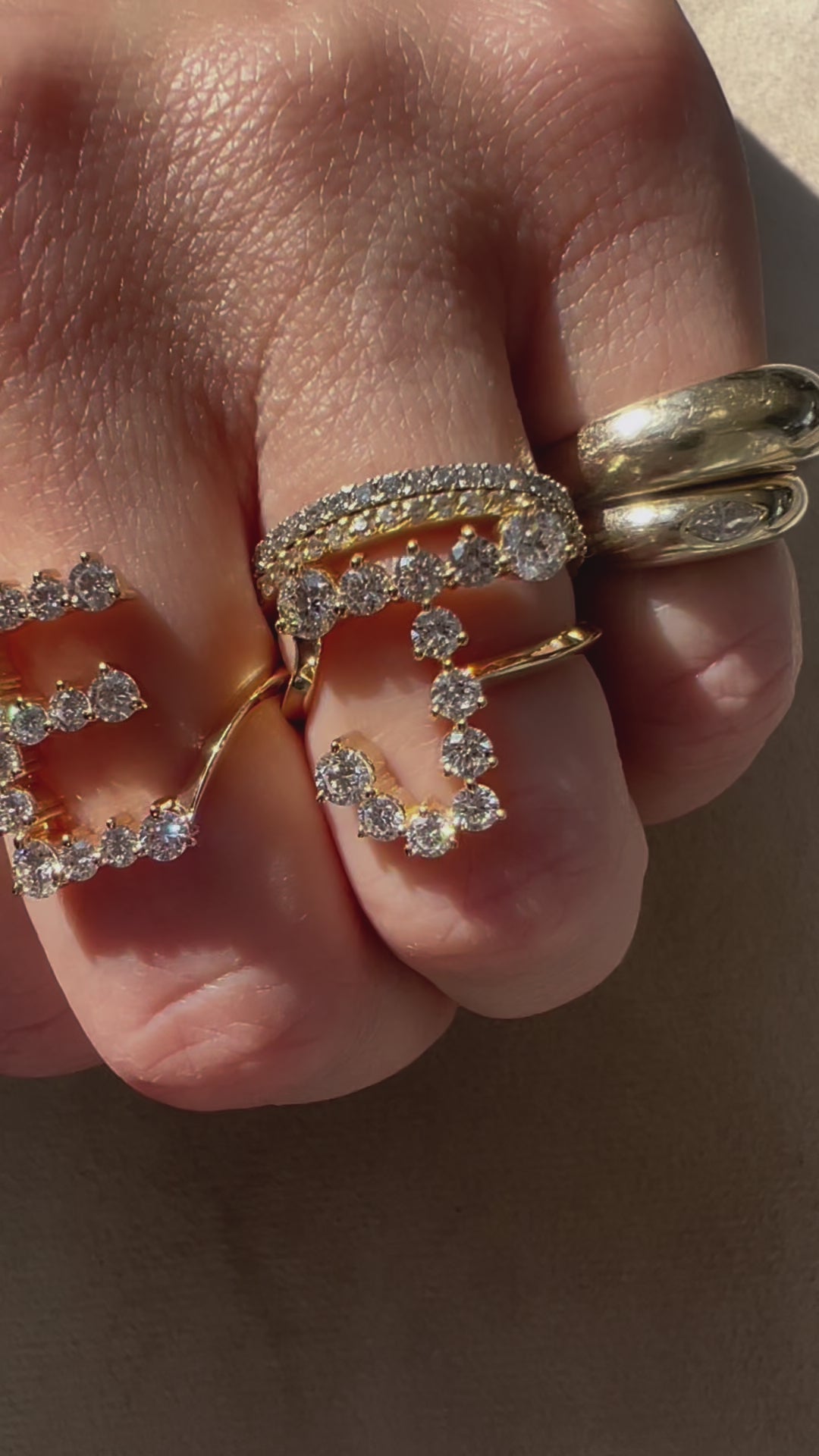 Jumbo diamond letter ring, designed for the girls who get it. This cool ring features a knife-edge band with graduated round 3-prong set diamonds. Make a statement styling this piece on literally any finger.