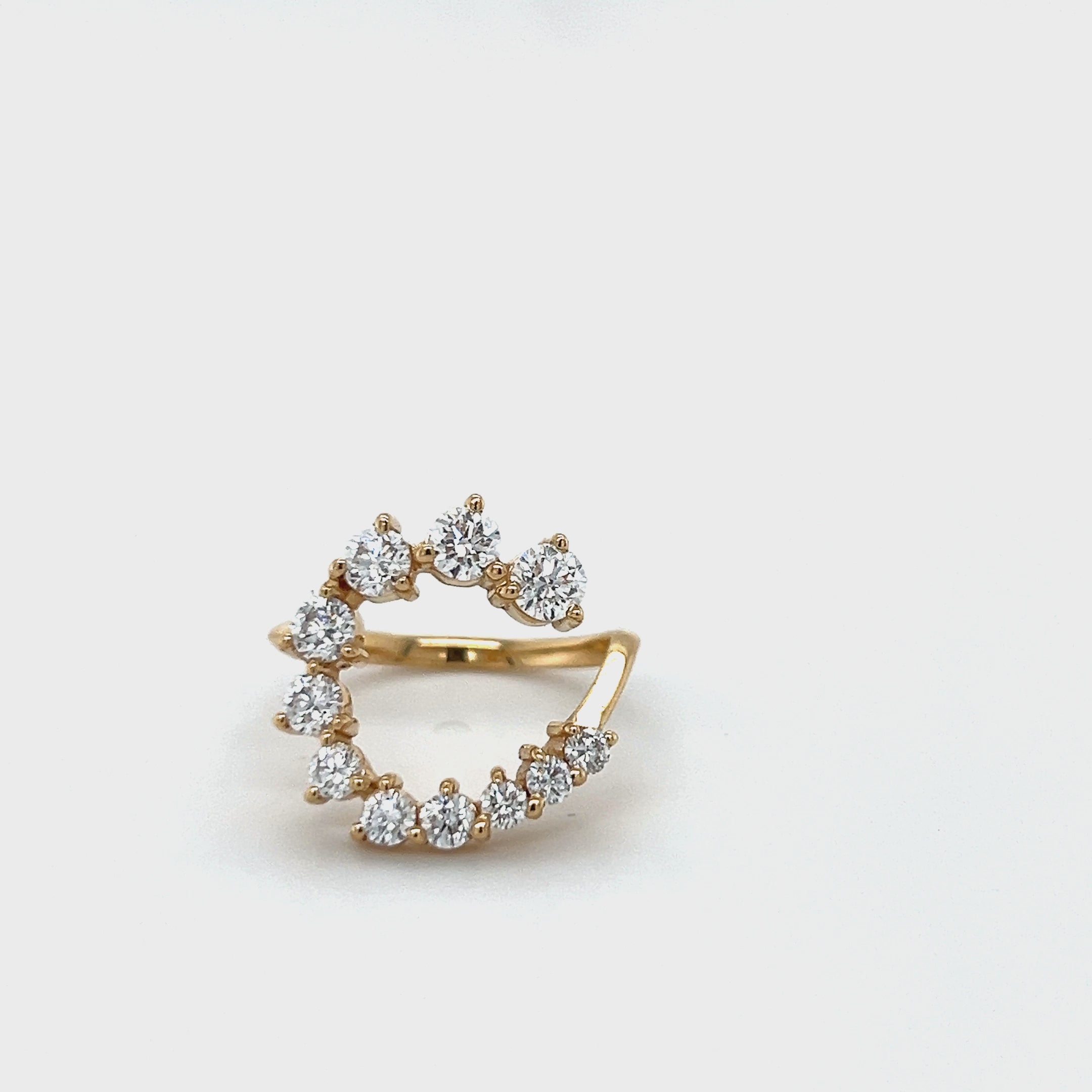 Jumbo diamond letter ring, designed for the girls who get it. This cool ring features a knife-edge band with graduated round 3-prong set diamonds. Make a statement styling this piece on literally any finger.